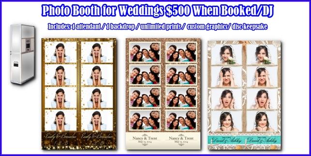 Check out our wedding photobooth, we will customize your names on the bottom of each photo. One attendant and fun props are always included. Free upload to your own dropbox or facebook page. We will also mail out a disc upon request of all the JPEGS.